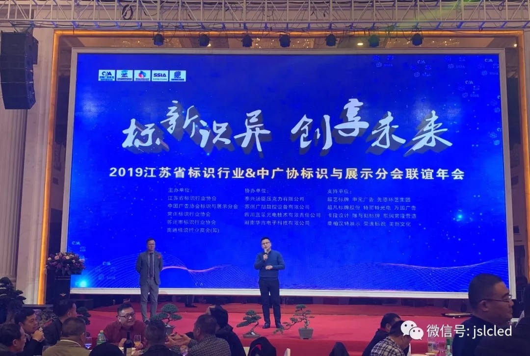 2019年11月28日,感恩節(jié)的當(dāng)天,在南通普天同慶大酒店隆重舉辦了江蘇標(biāo)識(shí)行業(yè)&中廣標(biāo)識(shí)與展示分會(huì)聯(lián)誼年會(huì)。由江蘇省標(biāo)識(shí)行業(yè)協(xié)會(huì)、中國(guó)廣告協(xié)會(huì)標(biāo)識(shí)與廣告分會(huì)、蘇州市標(biāo)識(shí)行業(yè)協(xié)會(huì)、常州標(biāo)識(shí)行業(yè)協(xié)會(huì)、南通市標(biāo)識(shí)行業(yè)協(xié)會(huì)(籌)聯(lián)合主辦,是整個(gè)江蘇省標(biāo)識(shí)人的盛會(huì)。